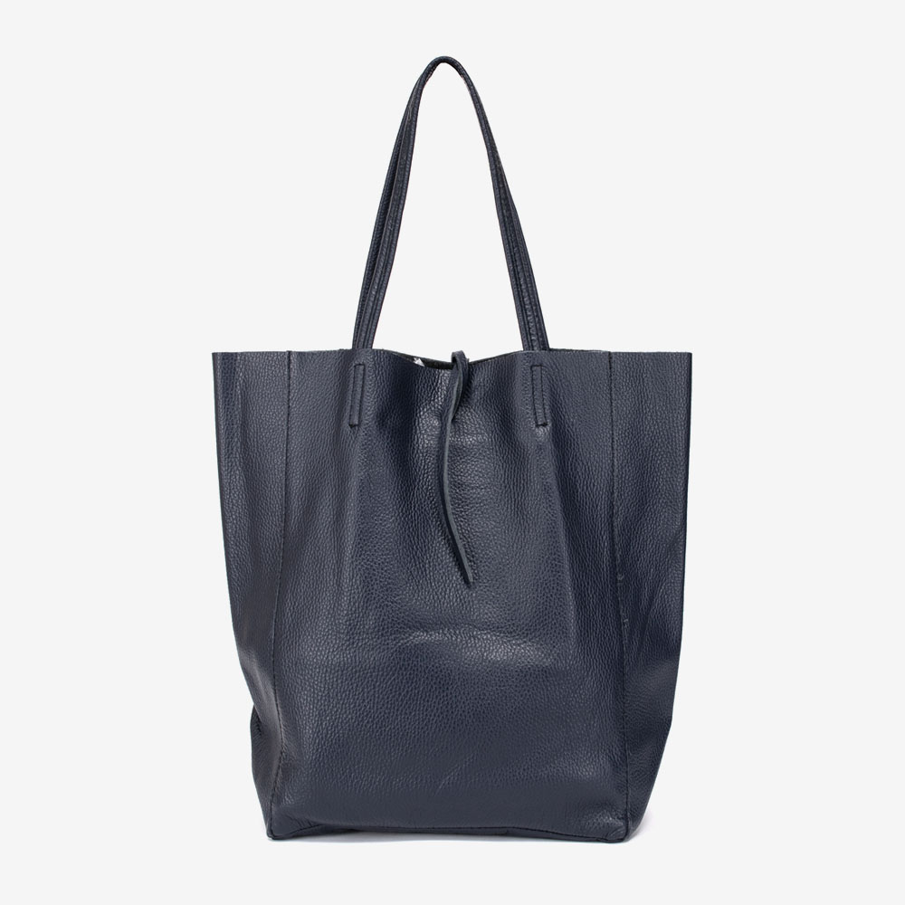 Geanta shopper model SHELBY din piele naturală italiana bleumarin