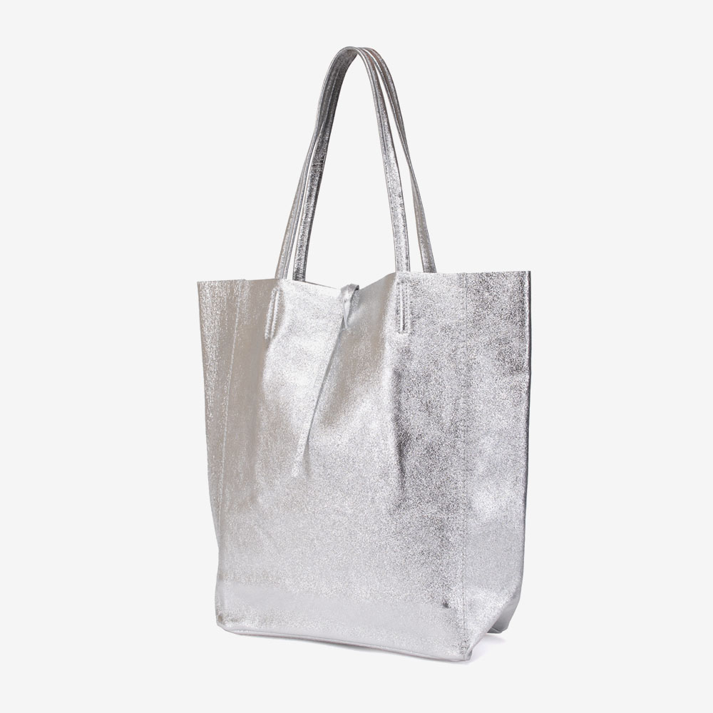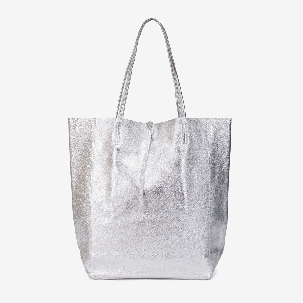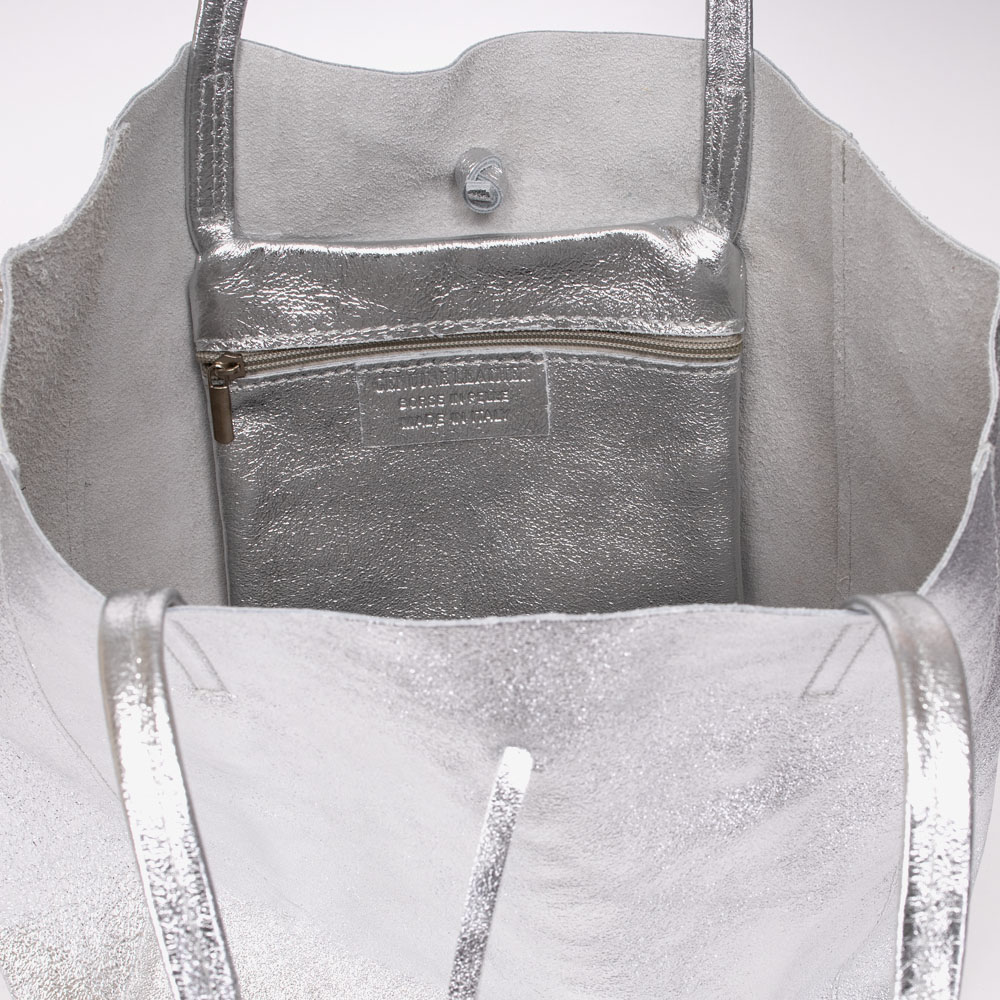Geanta shopper model SHELBY din piele naturală italiana silver