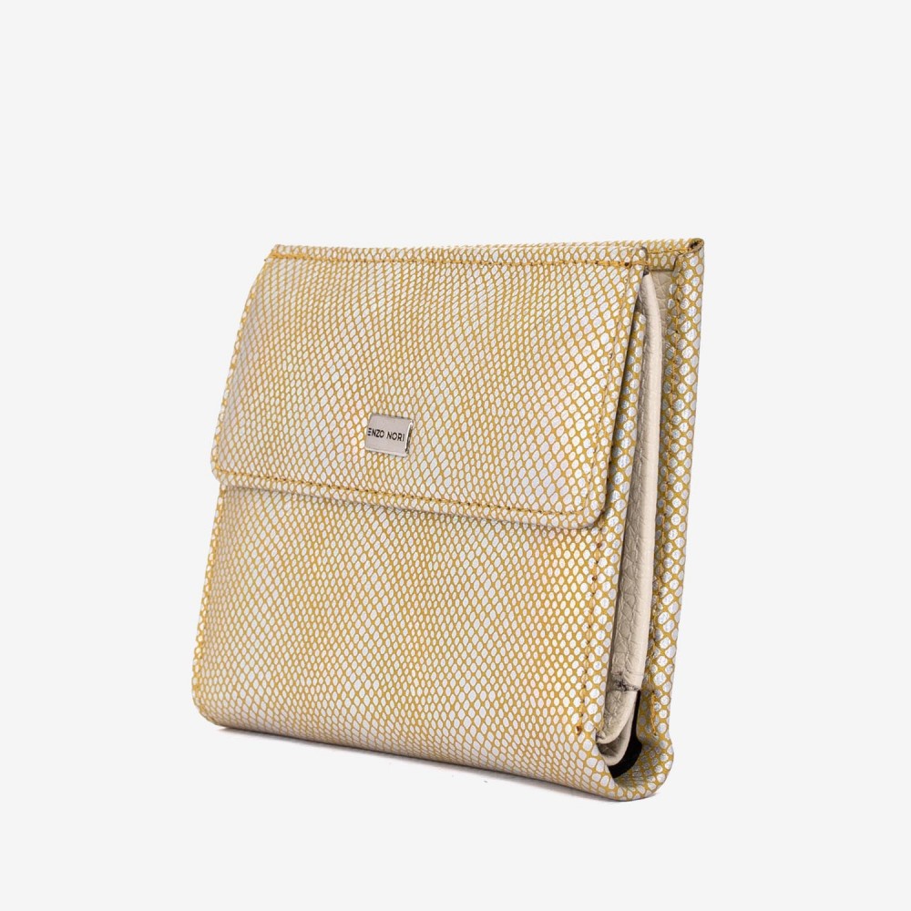 Portofel dama ENZO NORI model AMELY din piele naturală silver-galben