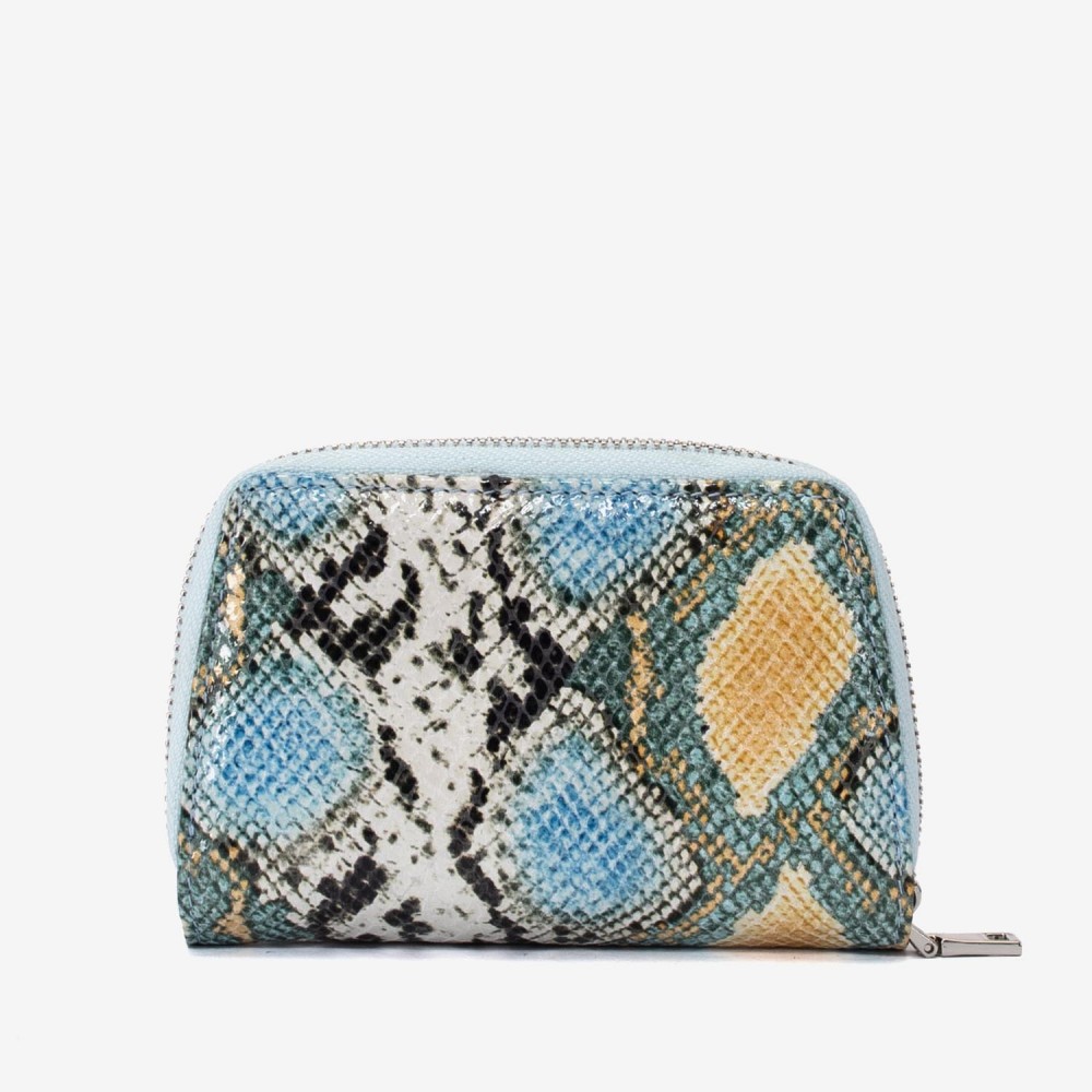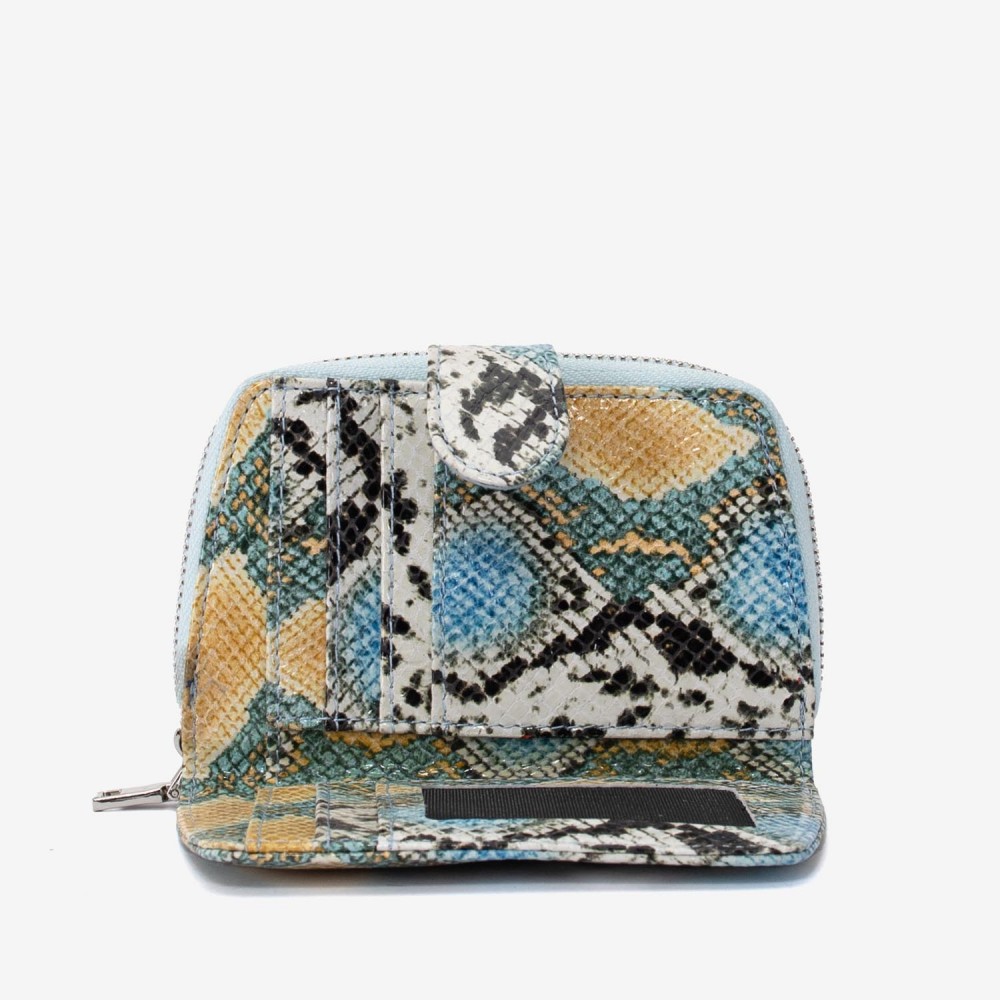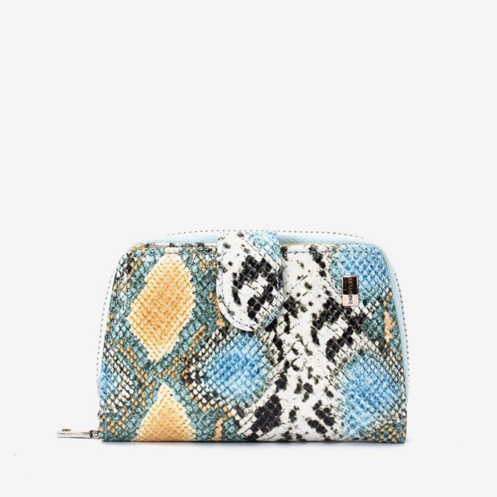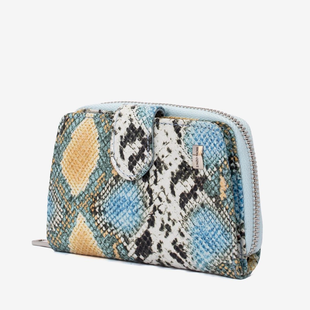 Portofel dama ENZO NORI model CASTEL piele naturala albastru-galben laser