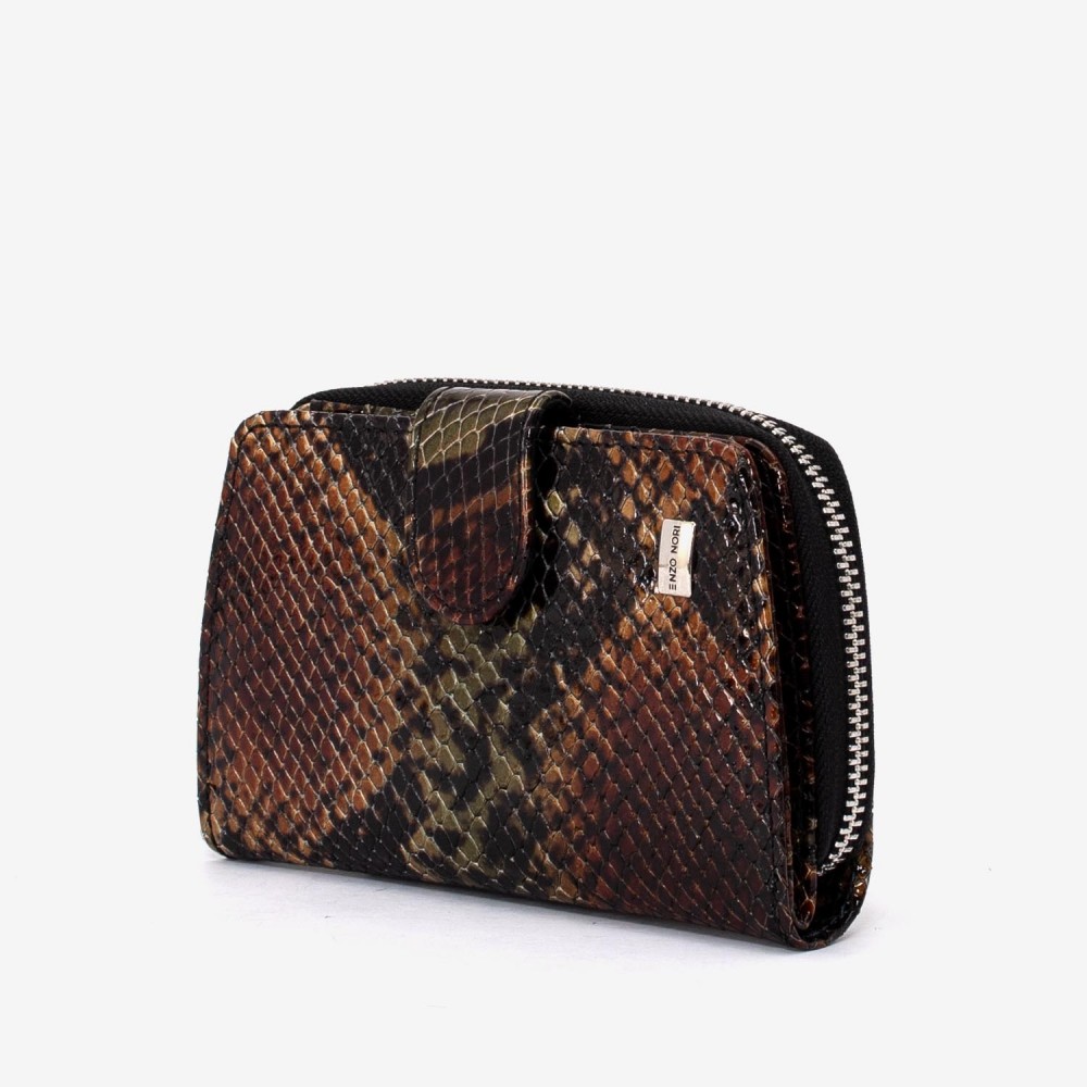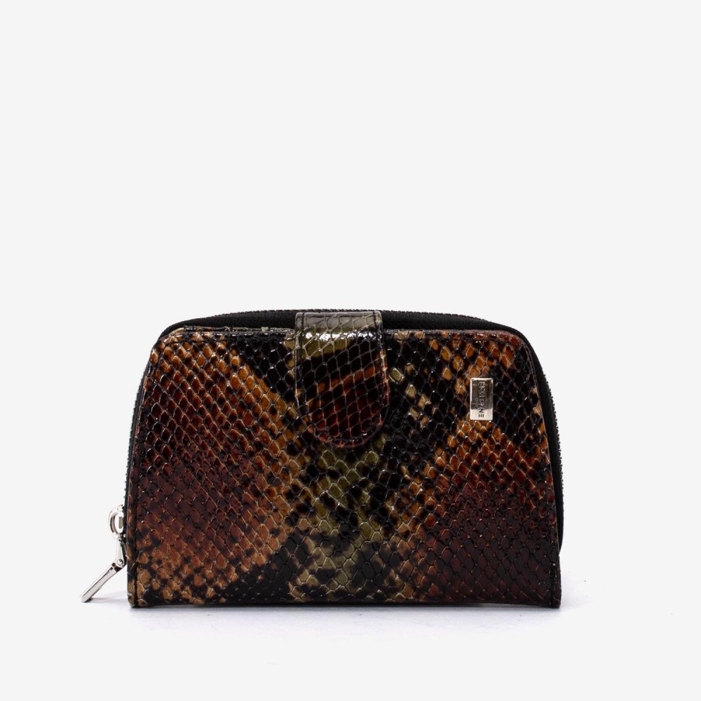 Portofel dama ENZO NORI model CASTEL piele naturala maro cu imprimeu