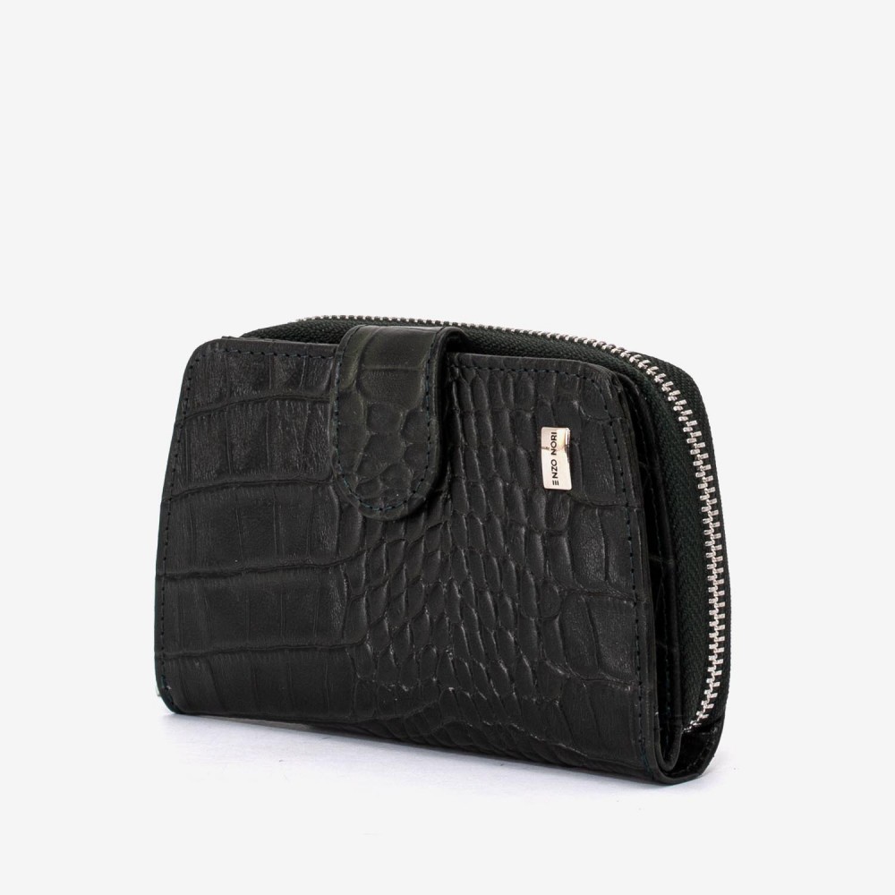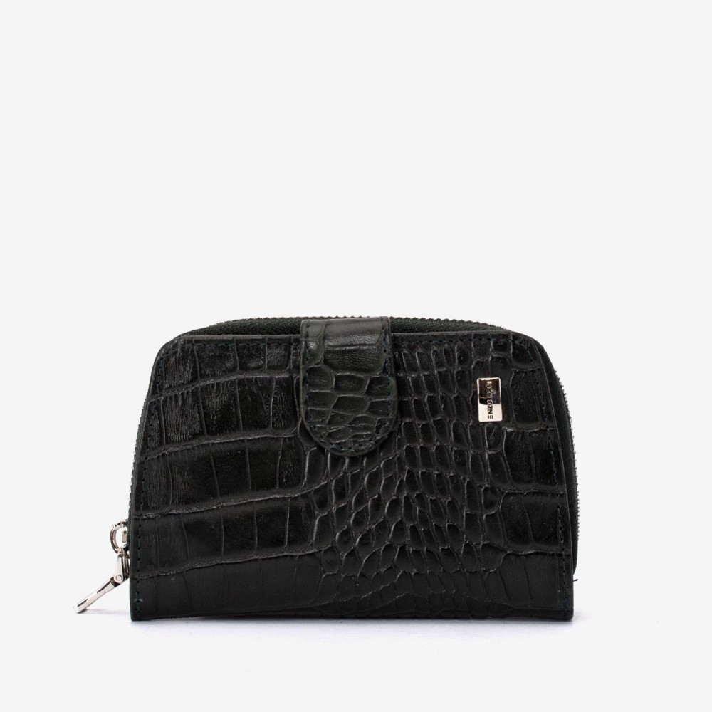 Portofel dama ENZO NORI model CASTEL piele naturala negru cu imprimeu