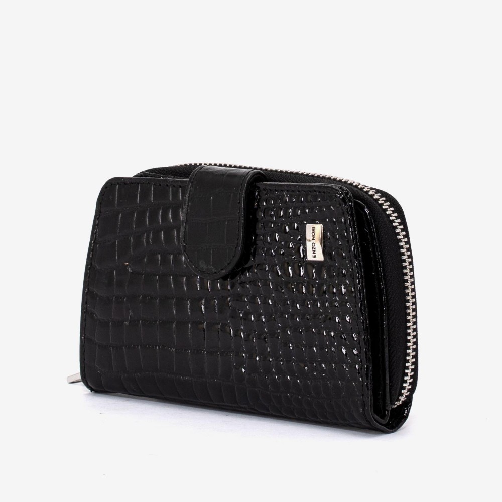 Portofel dama ENZO NORI model CASTEL piele naturala negru lacuit