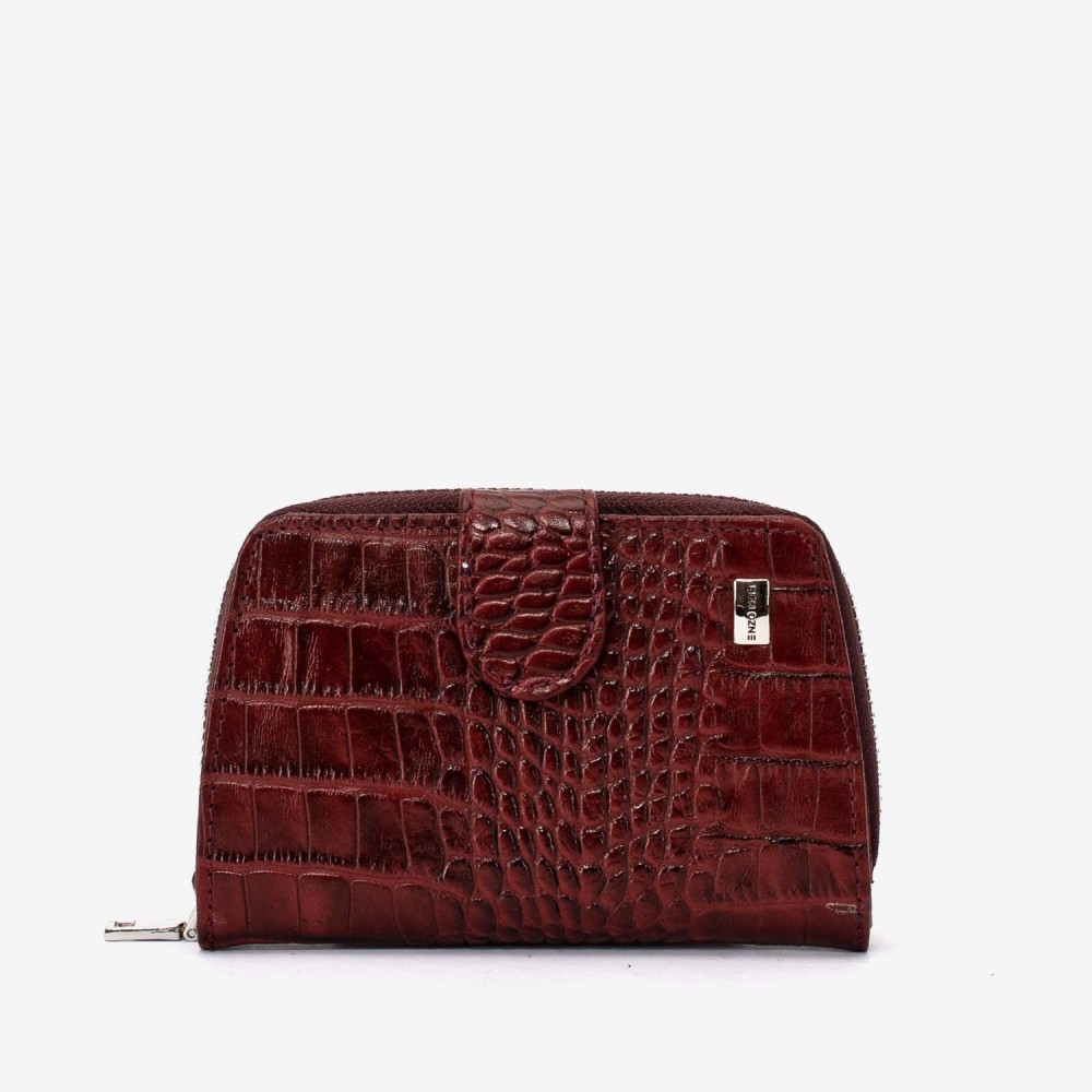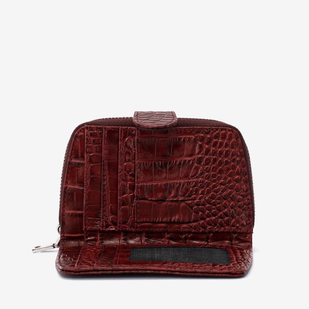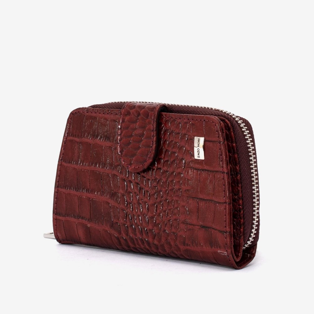 Portofel dama ENZO NORI model CASTEL piele naturala rosu cu imprimeu