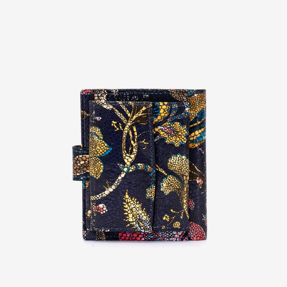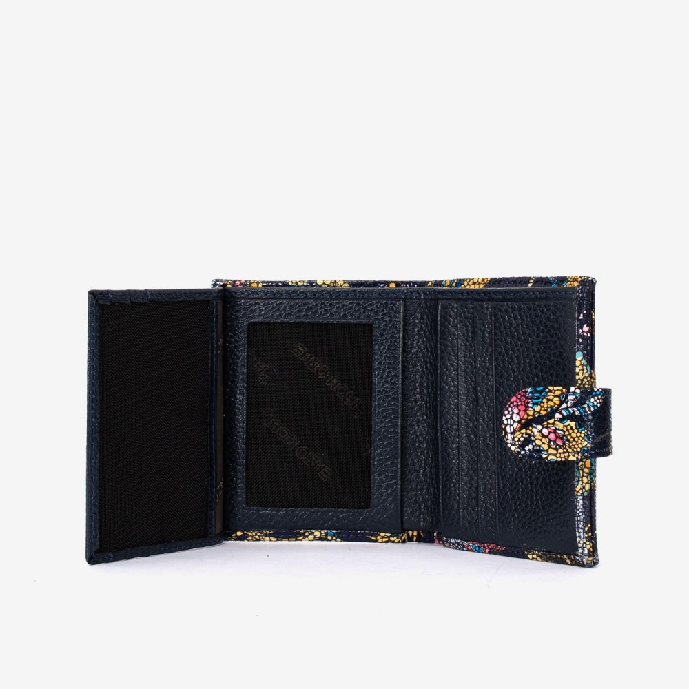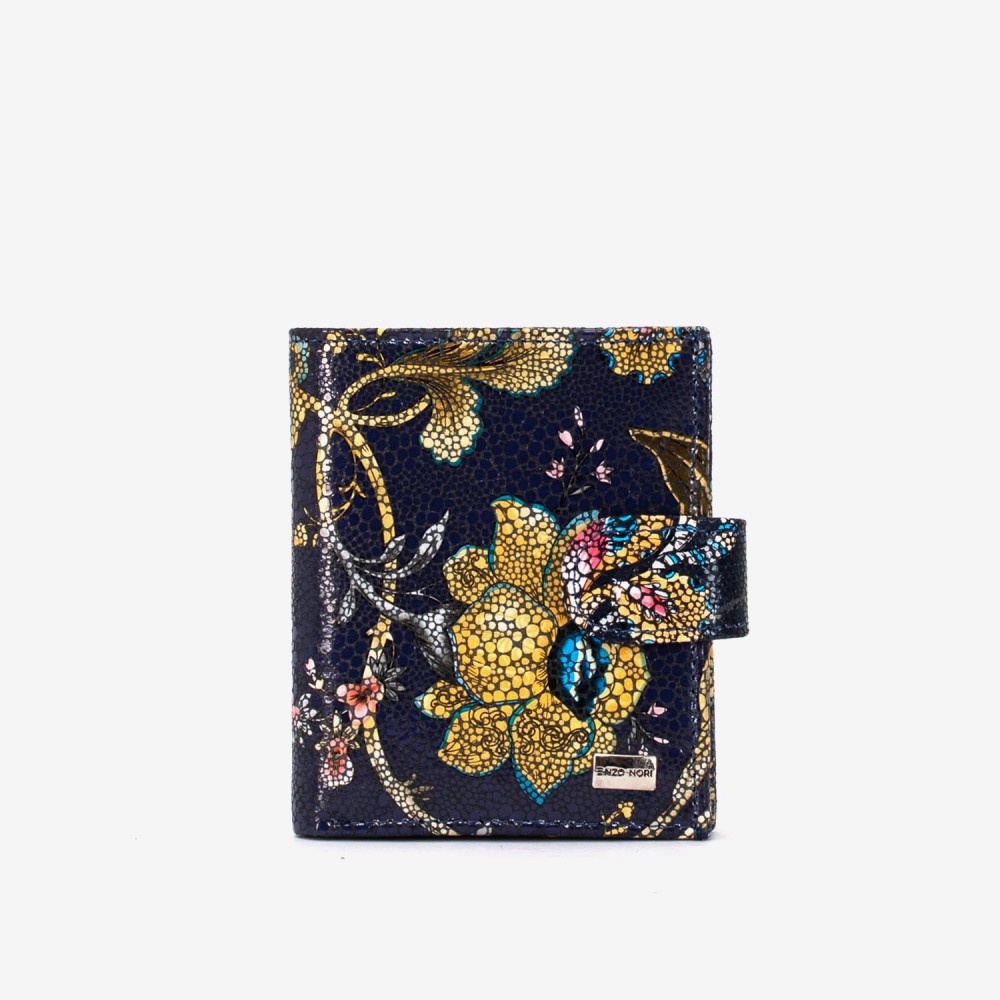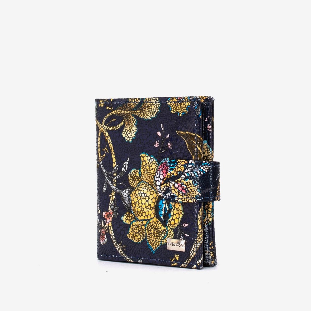 Portofel dama ENZO NORI model KAILA din piele naturala albastru cu flori