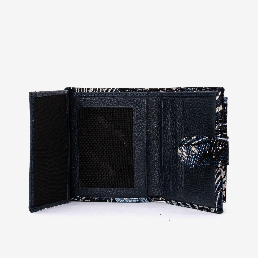 Portofel dama ENZO NORI model KAILA din piele naturala albastru cu imprimeu