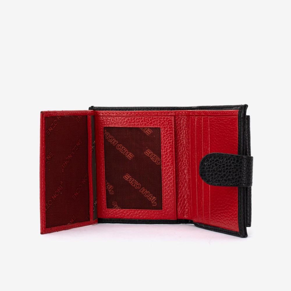 Portofel dama ENZO NORI model KAILA din piele naturala negru-rosu