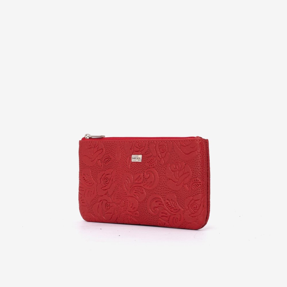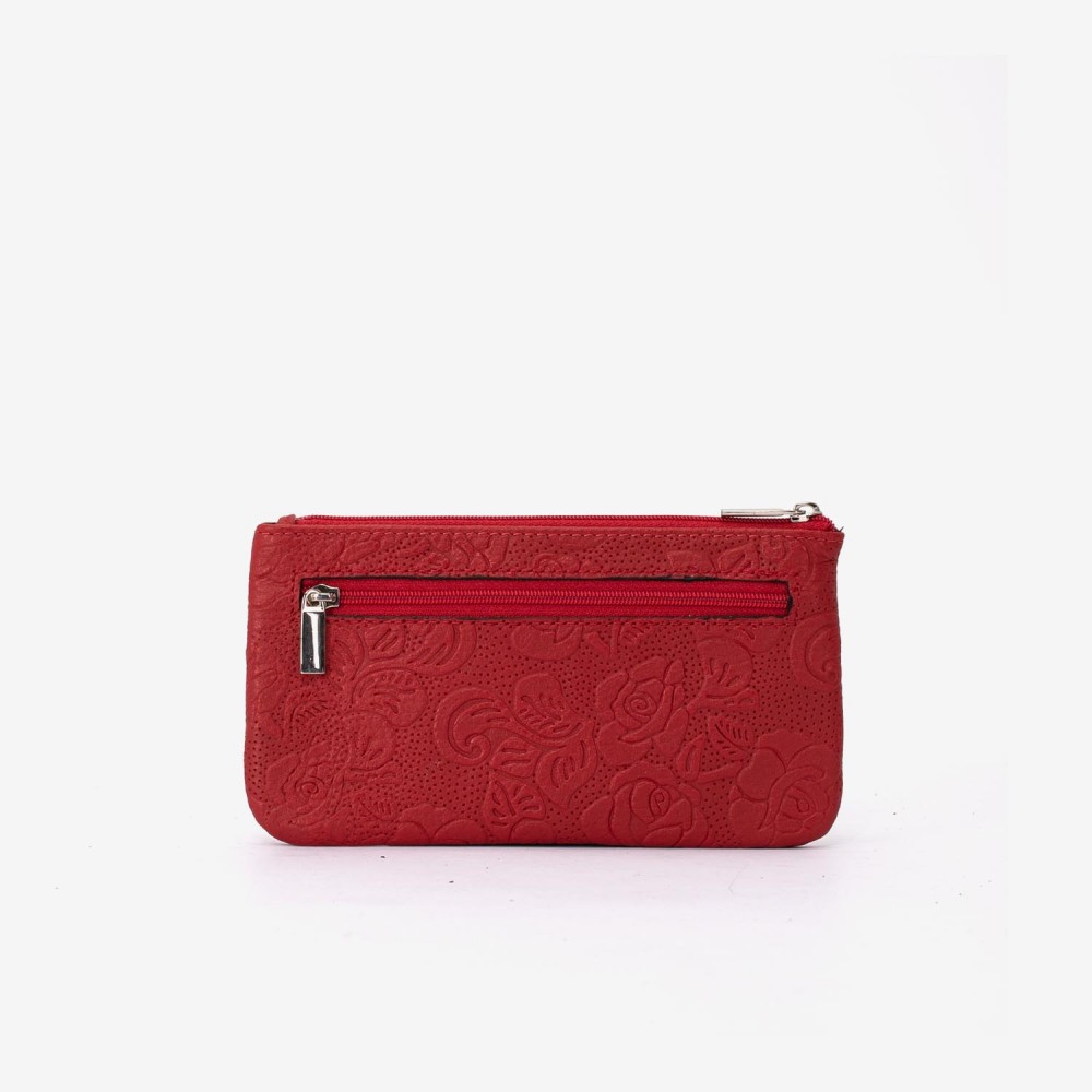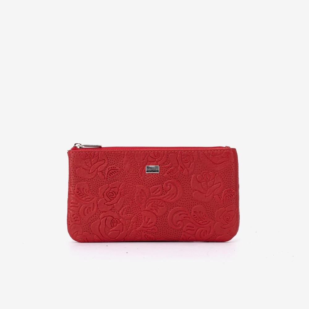 Portofel dama ENZO NORI model MAYRA din piele naturala rosu cu flori