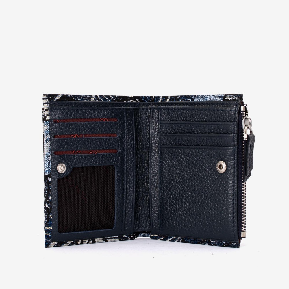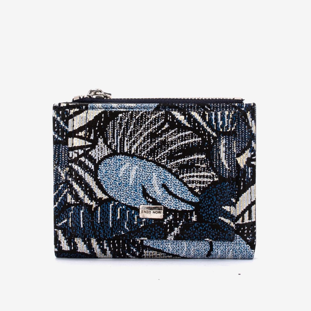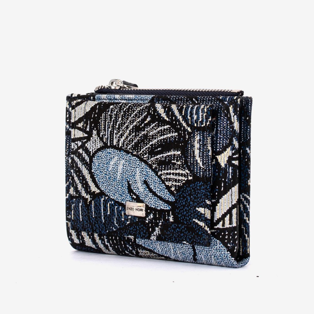 Portofel dama ENZO NORI model TESSY din piele naturala bleumarin cu flori