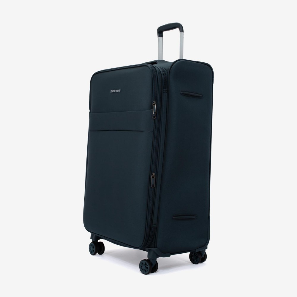 Troler set 2 Bucati ENZO NORI model SPARK Troler cabina 55 cm şi Troler mare 77 cm textil albastru-verde