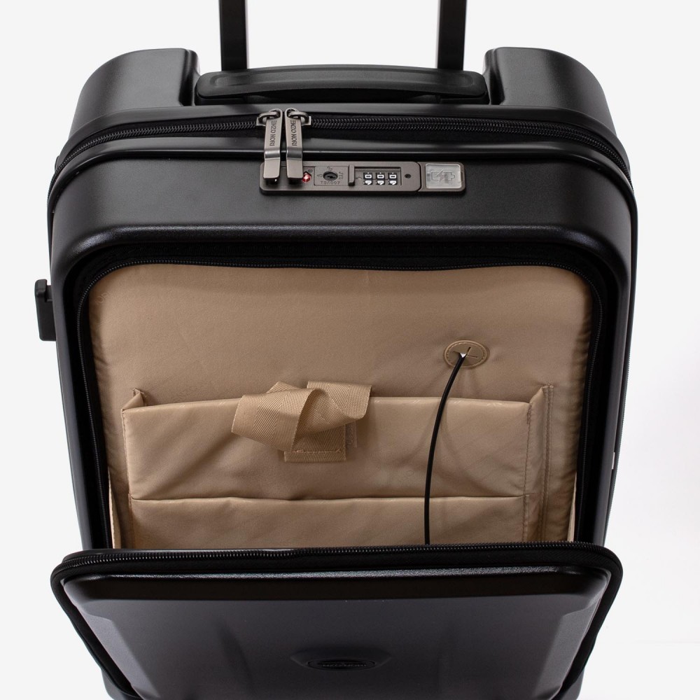 Troler cabina compartiment laptop ENZO NORI model GALAXY 55 cm policarbonat negru