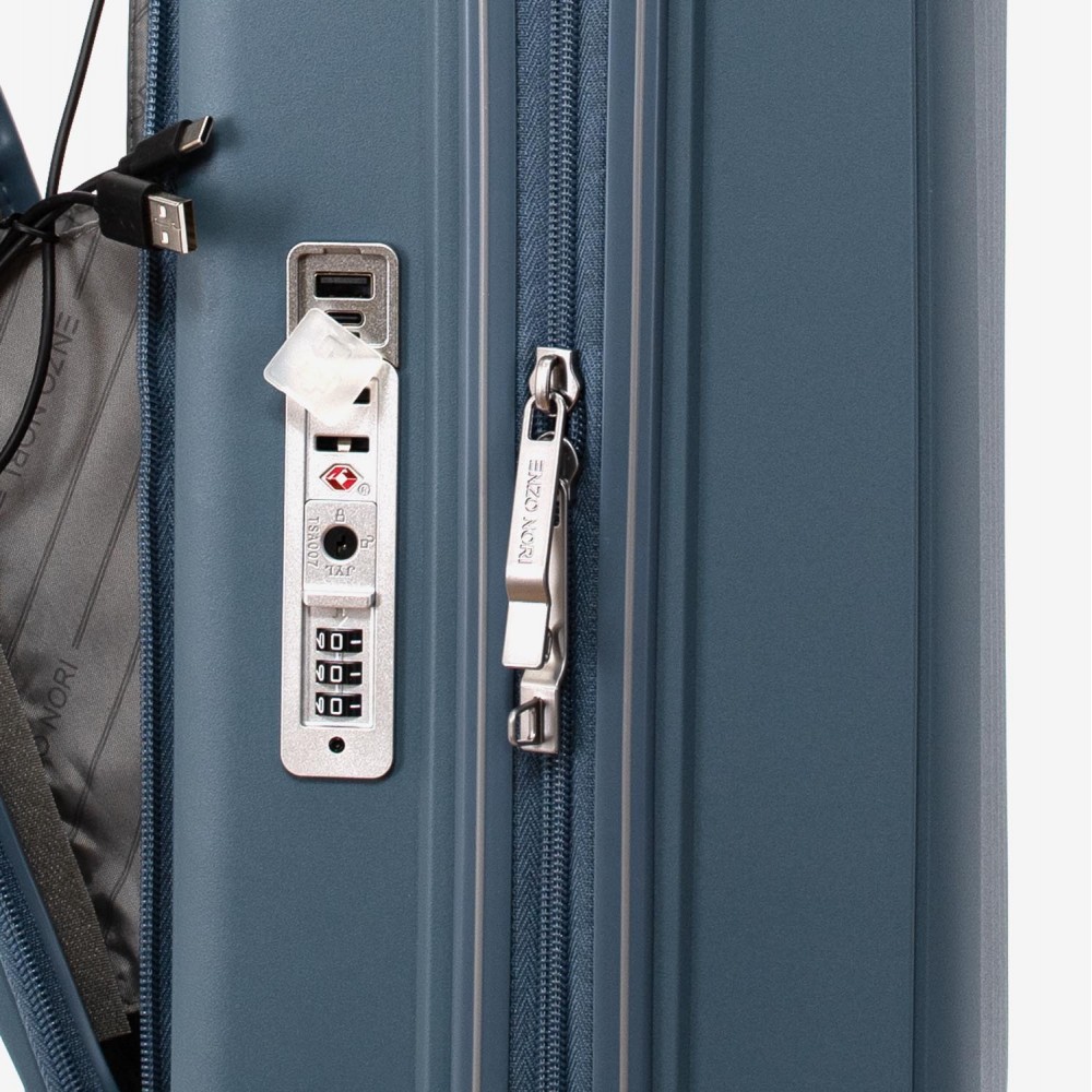 Troler cabina buzunar frontal laptop ENZO NORI model ROMA 55 cm polipropilenă albastru