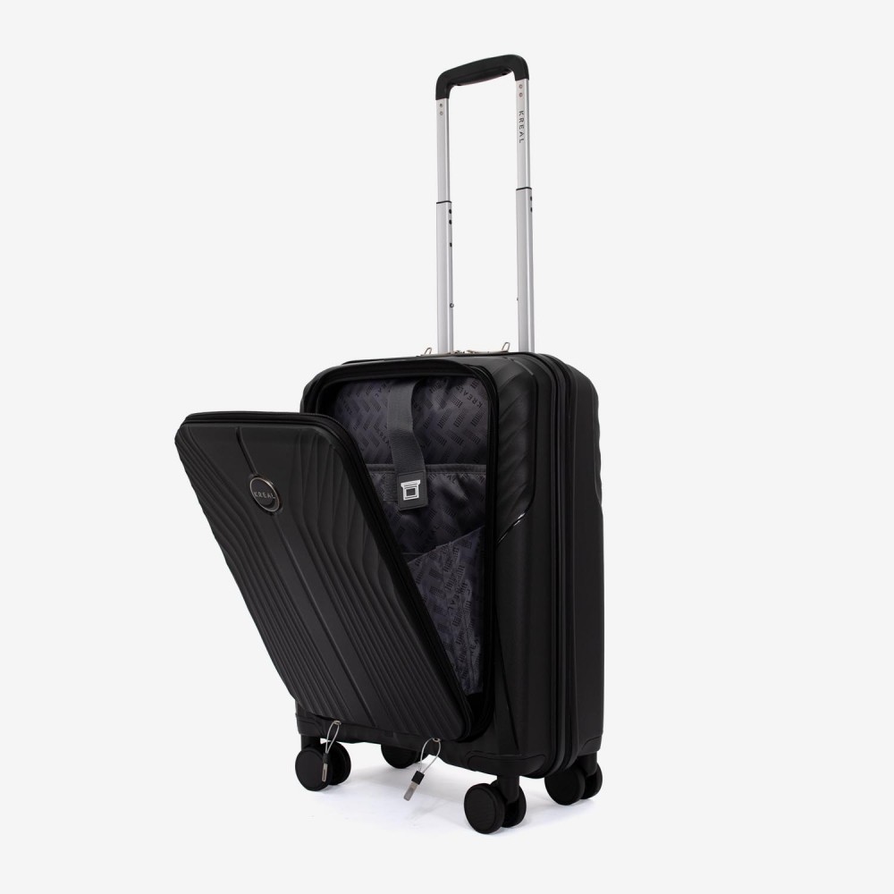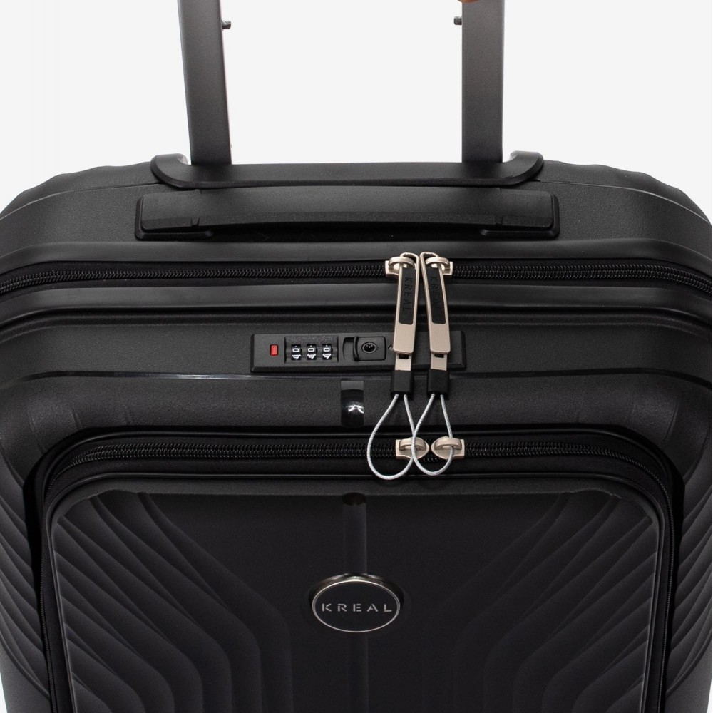 Troler cabina buzunar frontal laptop KREAL model IBIZA 55 cm polipropilenă negru