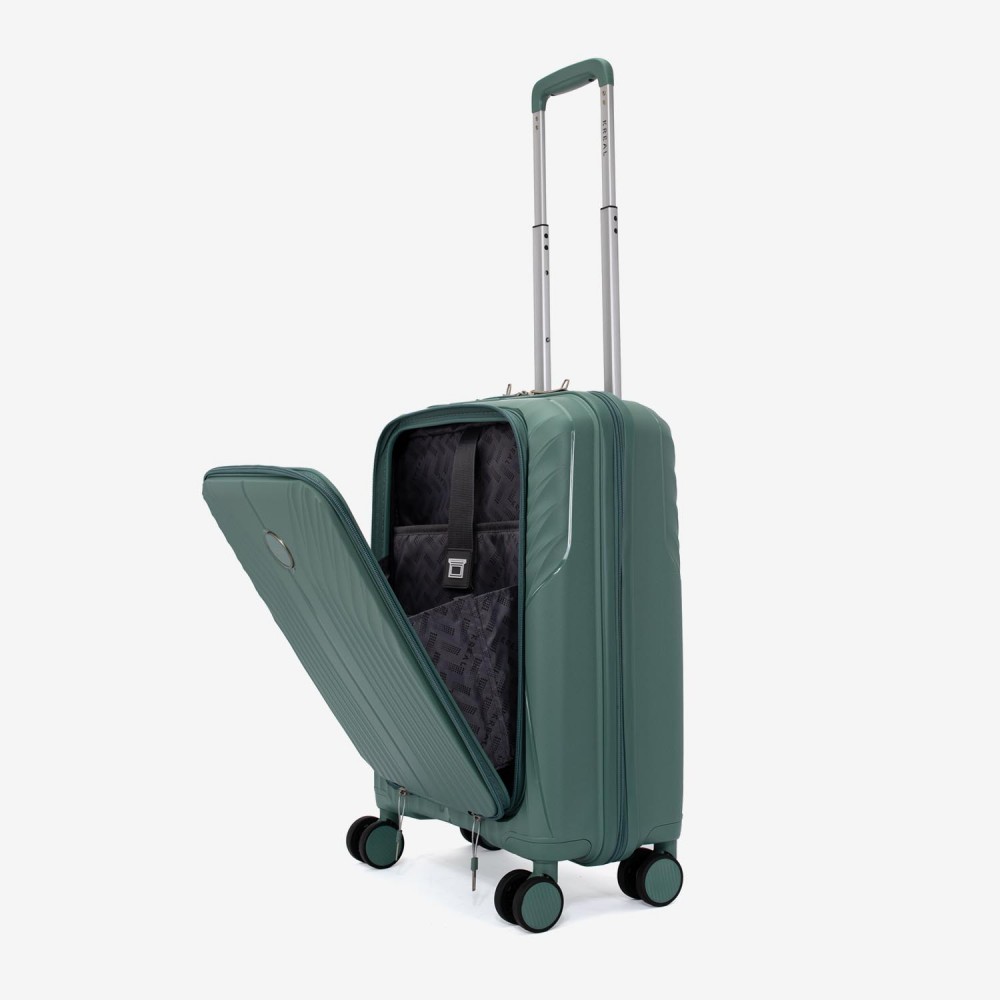 Troler cabina buzunar frontal laptop KREAL model IBIZA 55 cm polipropilenă verde inchis